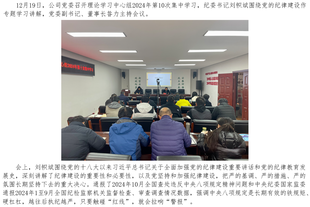 公司黨委召開(kāi)理論學(xué)習(xí)中心組2024年第10次集中學(xué)習(xí)強(qiáng)調(diào)